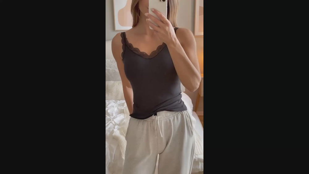 • Dentelle élégante : un détail chic qui transforme un simple débardeur en vrai essentiel mode.